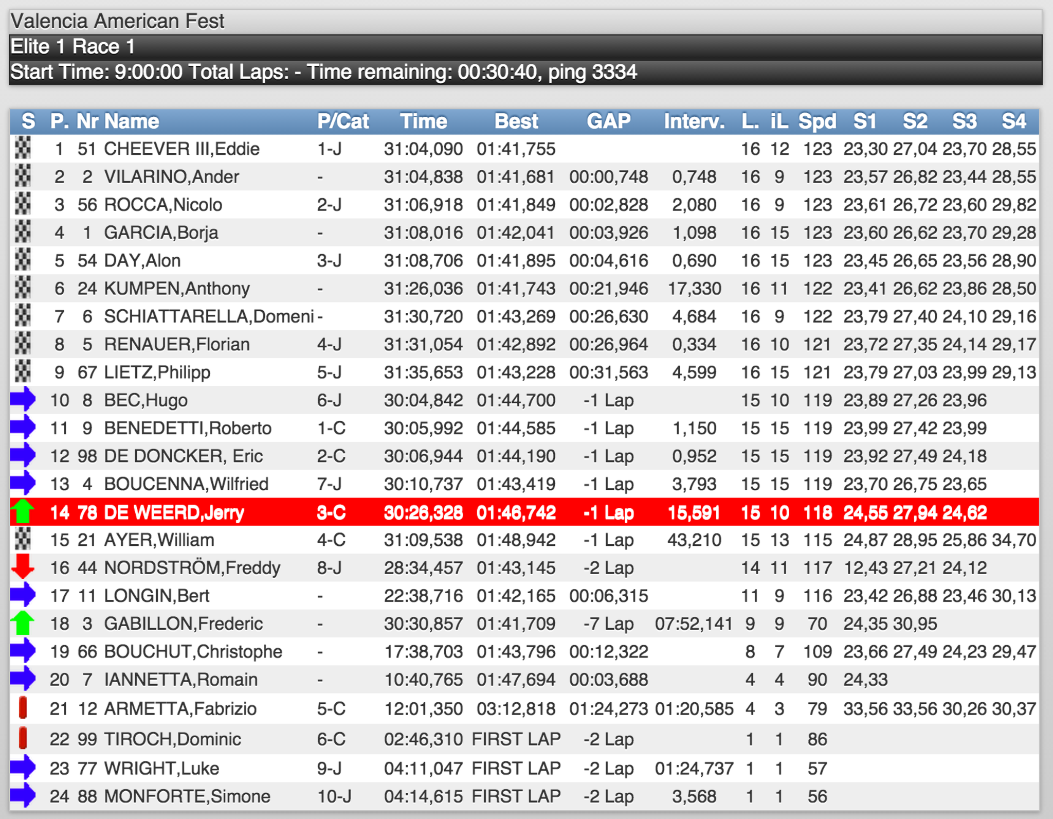 Vilariño partirá en pole position para la segunda carrera, la carrera de este domingo tras marcar la vuelta rápida de carrera en 1’41’’681. Junto a él estará Anthony Kumpen, por delante de Cheever, Rocca, Day y Borja García.