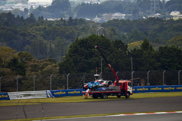 Cuando Marciello perseguía al #99, de repente se encontró con que Pino deceleró súbitamente en una zona rápida, entre la horquilla 'clásica' y la entrada a la sección nueva del mítico circuito nipón. Tratando de esquivarlo, perdió el control y se fue contra el muro exterior, acabando con su carrera cuando estaban optando a posiciones de puntos.